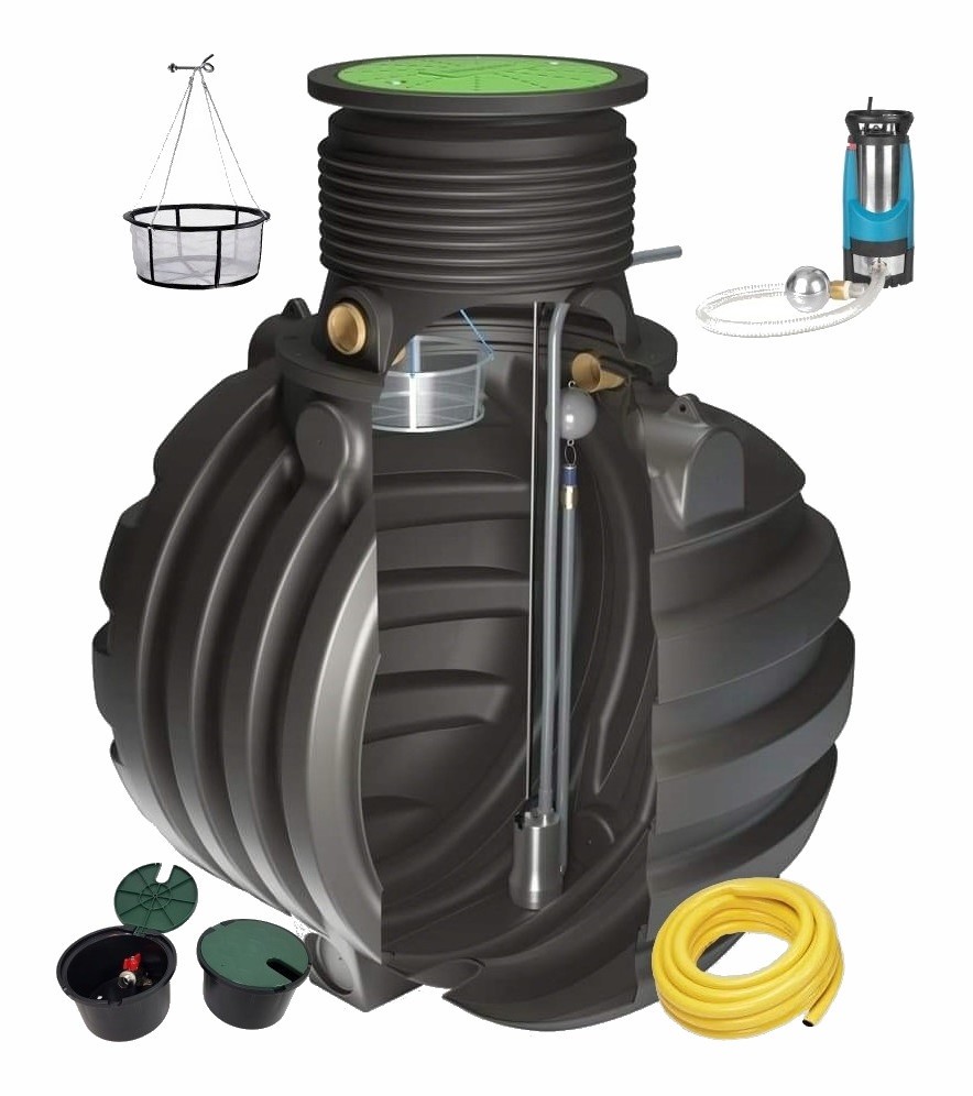 Podzemni sustav za prikupljanje i korištenje kišnice, u skladu s EN 16941-1 (potpuno opremljeni sustavi). Niskoprofilni dizajn za bržu i isplativiju ugradnju, siguran poklopac klase A15 s dvije brave od nehrđajućeg čelika te ugrađena filtracija i automatska pumpa (ovisno o izvedbi/kompletu). Idealno za zalijevanje vrta i pranje vozila.